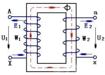 當(dāng)端子的感應(yīng)電勢(shì)方向共一同,稱為同名端;反過來說,假如在同名端通入同方向的直流電流,它們?cè)阼F芯中產(chǎn)生的磁通也是同方向的。標(biāo)號(hào)同為首端或同為尾端的端子而且感應(yīng)電勢(shì)方向一起,這種標(biāo)號(hào)的繞組稱為減極性,如圖1.3a所示,此時(shí)A-a端子的電壓是兩個(gè)繞組感應(yīng)電勢(shì)相減的效果。在電壓互感器中正確的標(biāo)號(hào)規(guī)則為減極性。